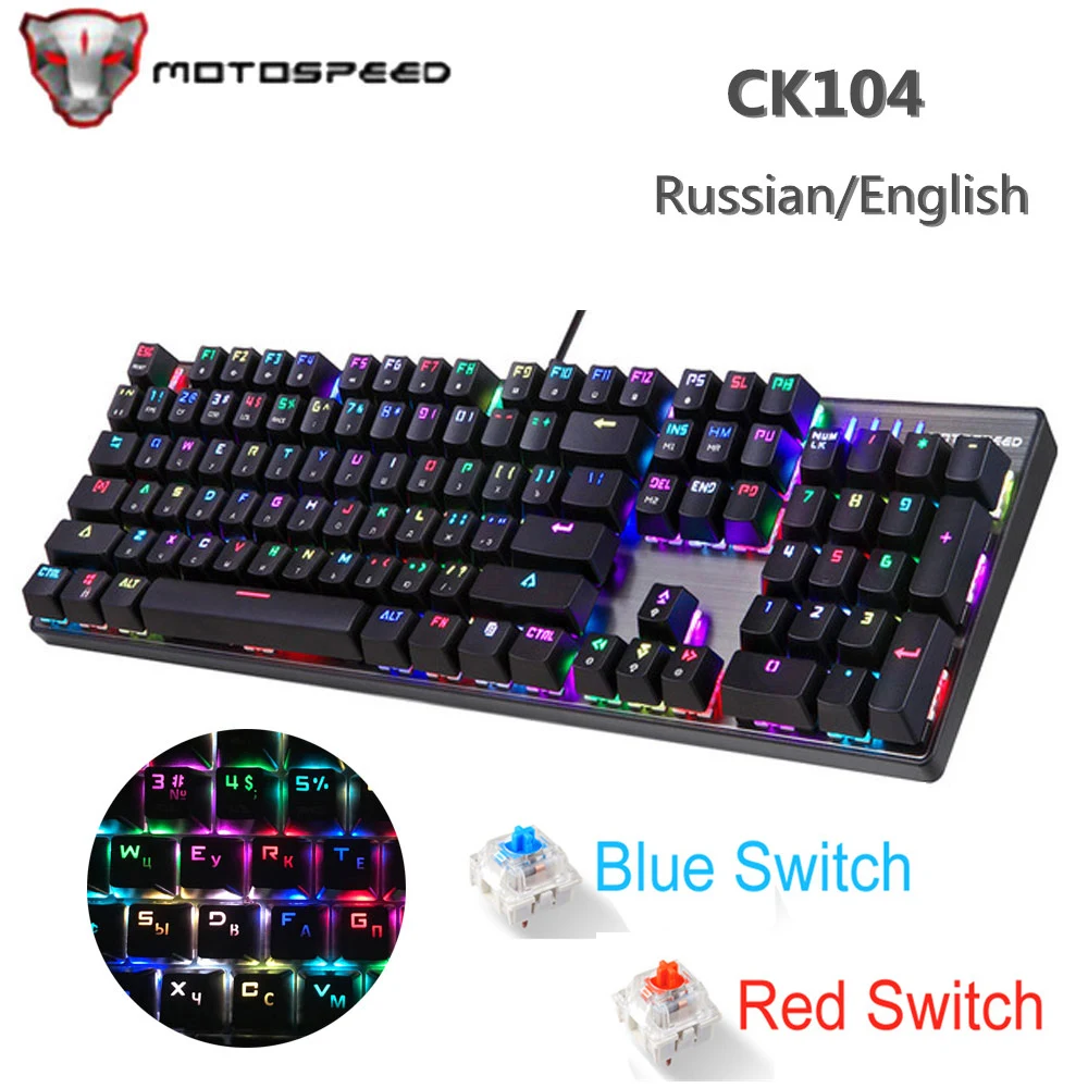 MOTOSPEED CK104 Metal 104 Keys Blue / Red Switch Russian English Gaming Mechanical Keyboard Backlit for Dota 2 Overwatch Gamer-. hello friends, meet again with us, Kali I will meriview MOTOSPEED CK104 Metal 104 Keys Blue / Red Switch Russian English Gaming Mechanical Keyboard Backlit for Dota 2 Overwatch Gamer. For you are compare price of the product then you are in the right place to read this article